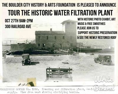 Each year in May the Historic Preservation Committee of Boulder City plans and organizes Preservation Day activities. As a sponsor of this great event each year we give tours of the Historic Water Filtration Plant which includes describing to the public how the plant operated, describing the process of how the water was pumped up to Boulder City from the Colorado River and how it was then treated to provide life-sustaining crystal clear water for the Dam workers and their families.